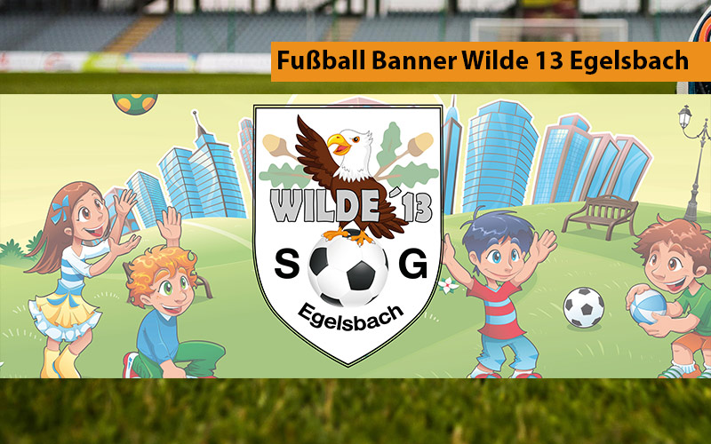 Nach der Erstellung des Logos für die Kinder-Fußball-Mannschaft Wilde 13 aus Egelsbach musste natürlich noch ein Banner für die Turniere dazu kommen.
